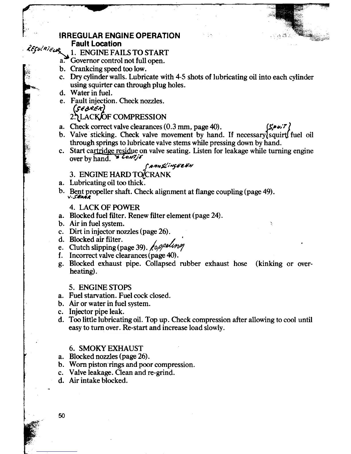 f. Incorrect valve clearances (page 40).