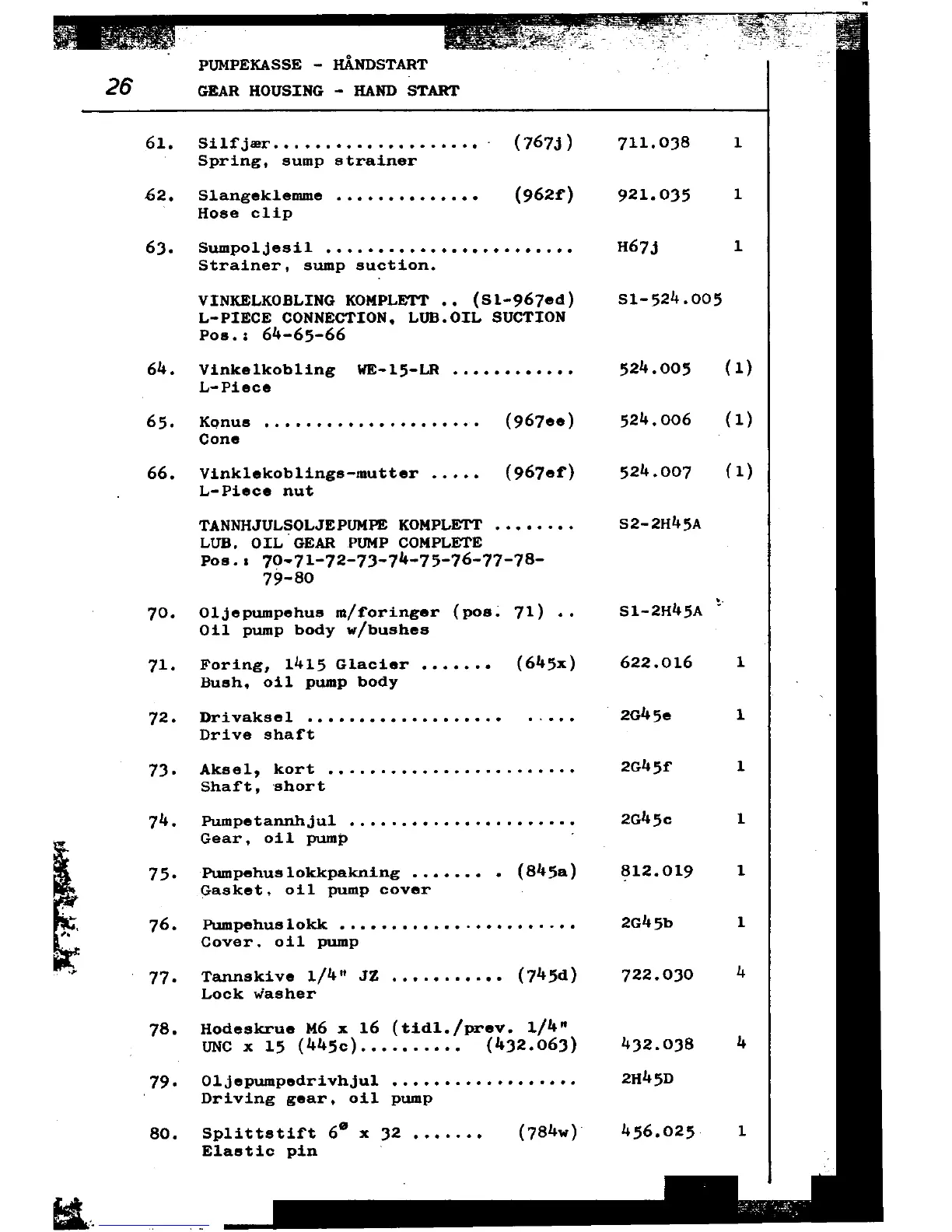 TANNHJULSOLJEPUMPE KOMPLETT S2-2H45A