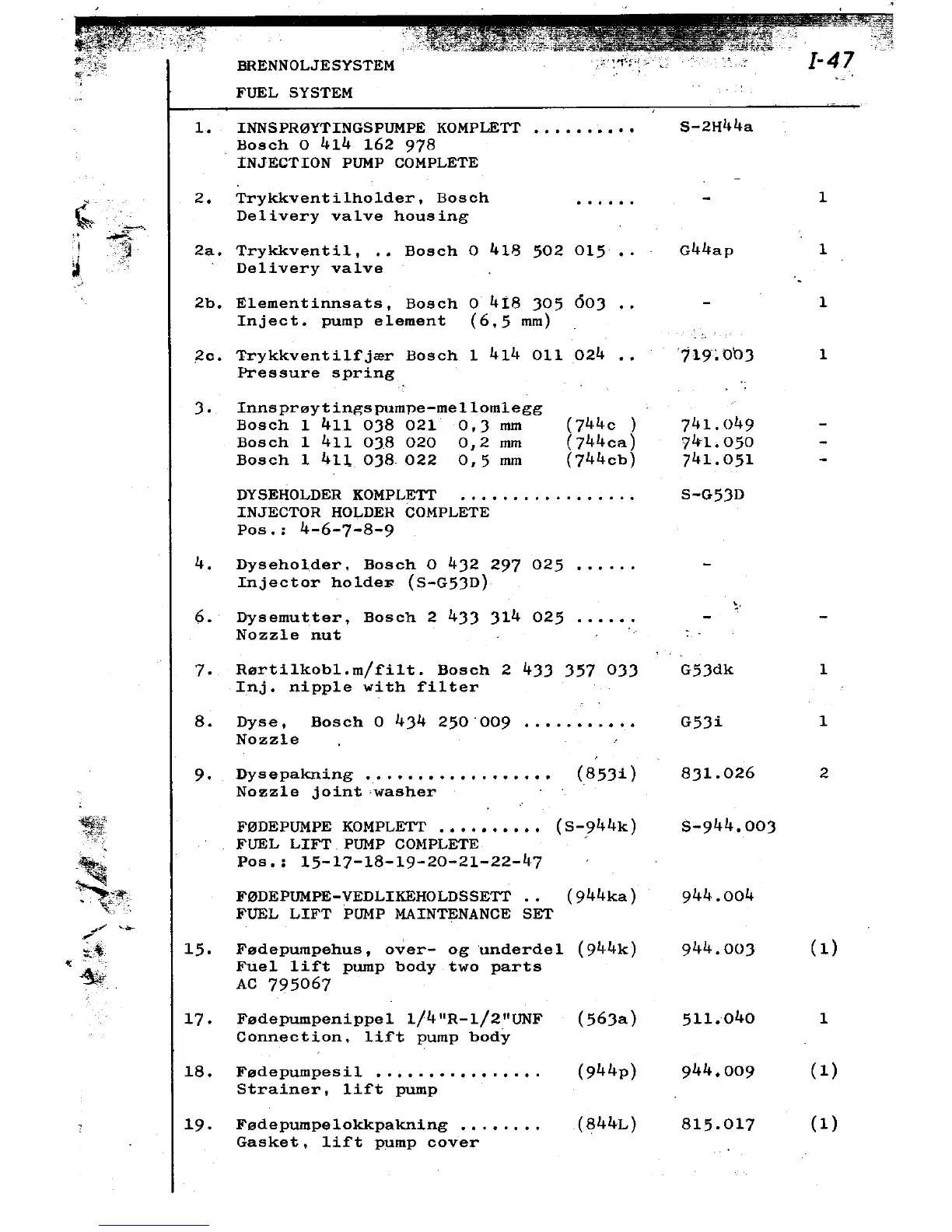 ~~ F0DEPUMPE KOMPLETT ,. (S-944k) S-944.00J