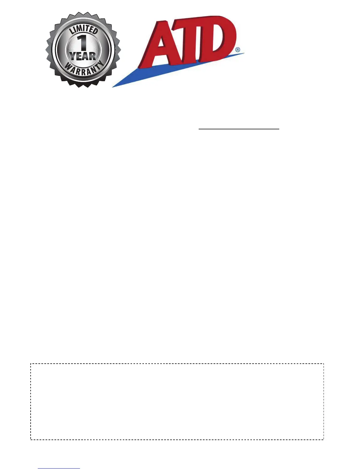 If this ATD product is altered, abused, misused, modified, or undergoes service by an unauthorized technician, your warranty will