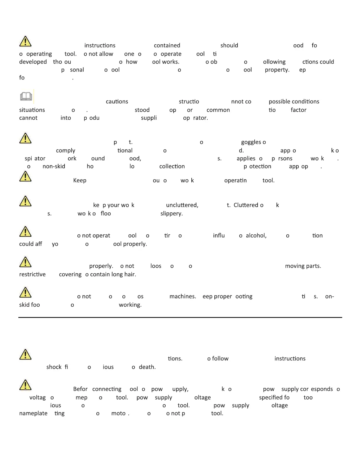 resulƟ n severe er injury t t user and bystanders, rcausedamaget the t and Ke this manual