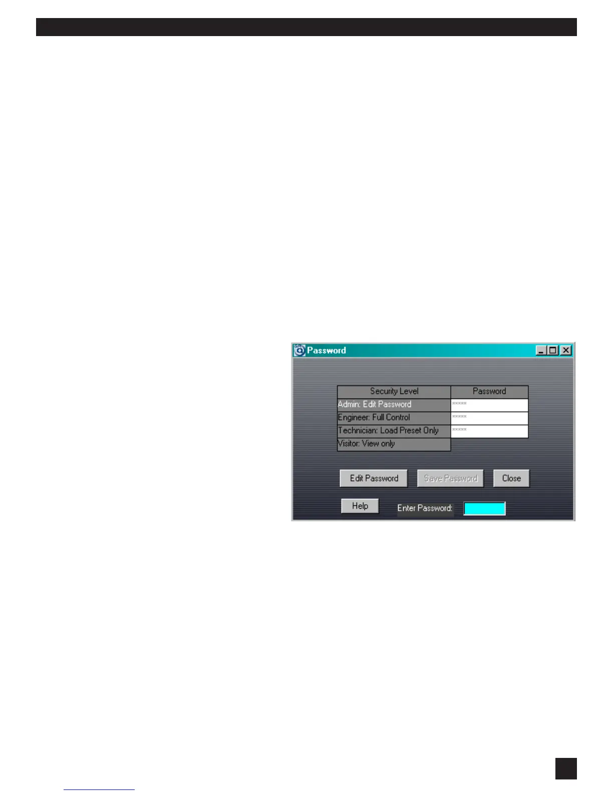 parameters, and the important unique ability to set passwords for access to all security levels. Separate