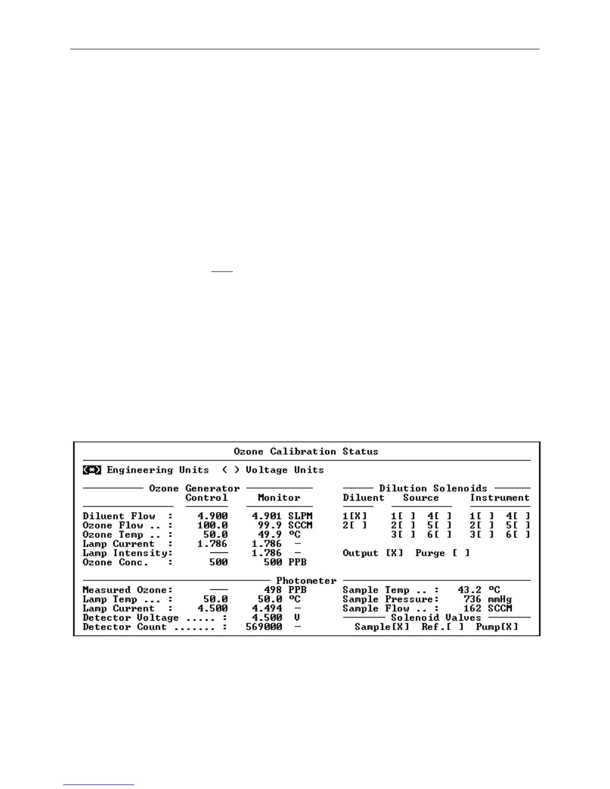 of the Ozone Calibration Status screen (see Figure 9-). This