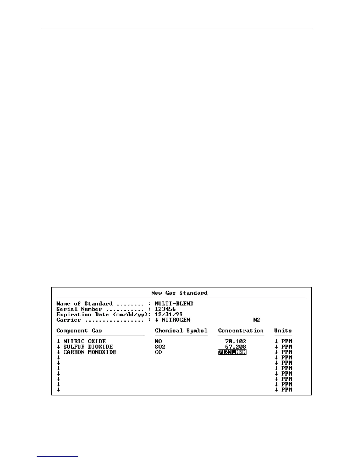 [2] Select Gas Standards and press the Enter button. Another