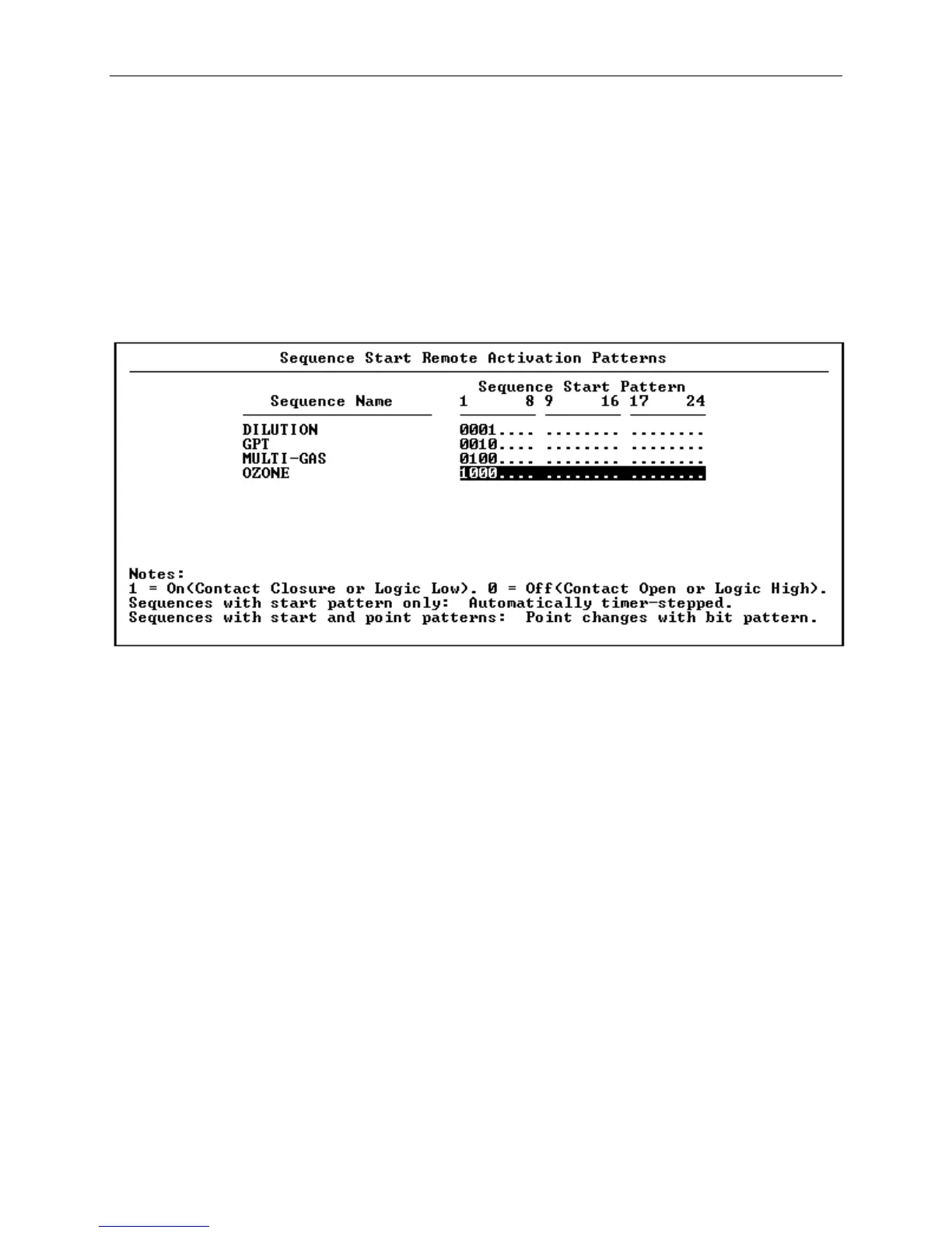 Figure 6-10 Sequence Start Remote Activation Patterns Screen
