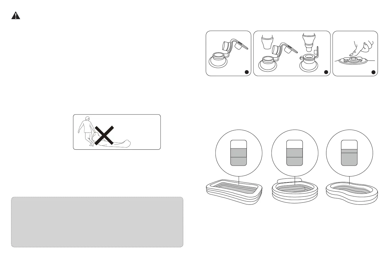 Fill the pool slowly, do not exceed the middle ring to avoid water overflow.