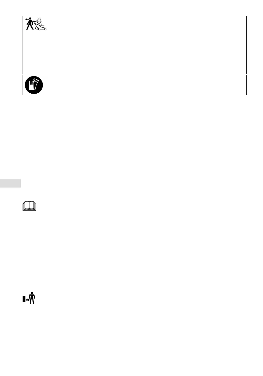 • When mowing you must always wear a strong pair of shoes or safety shoes and long trousers. Avoid wearing loose