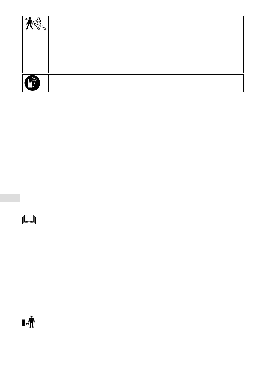 Het contact met de roterende messenbalk kan tot zware hand- en voetletsels. Omhoog geslingerde