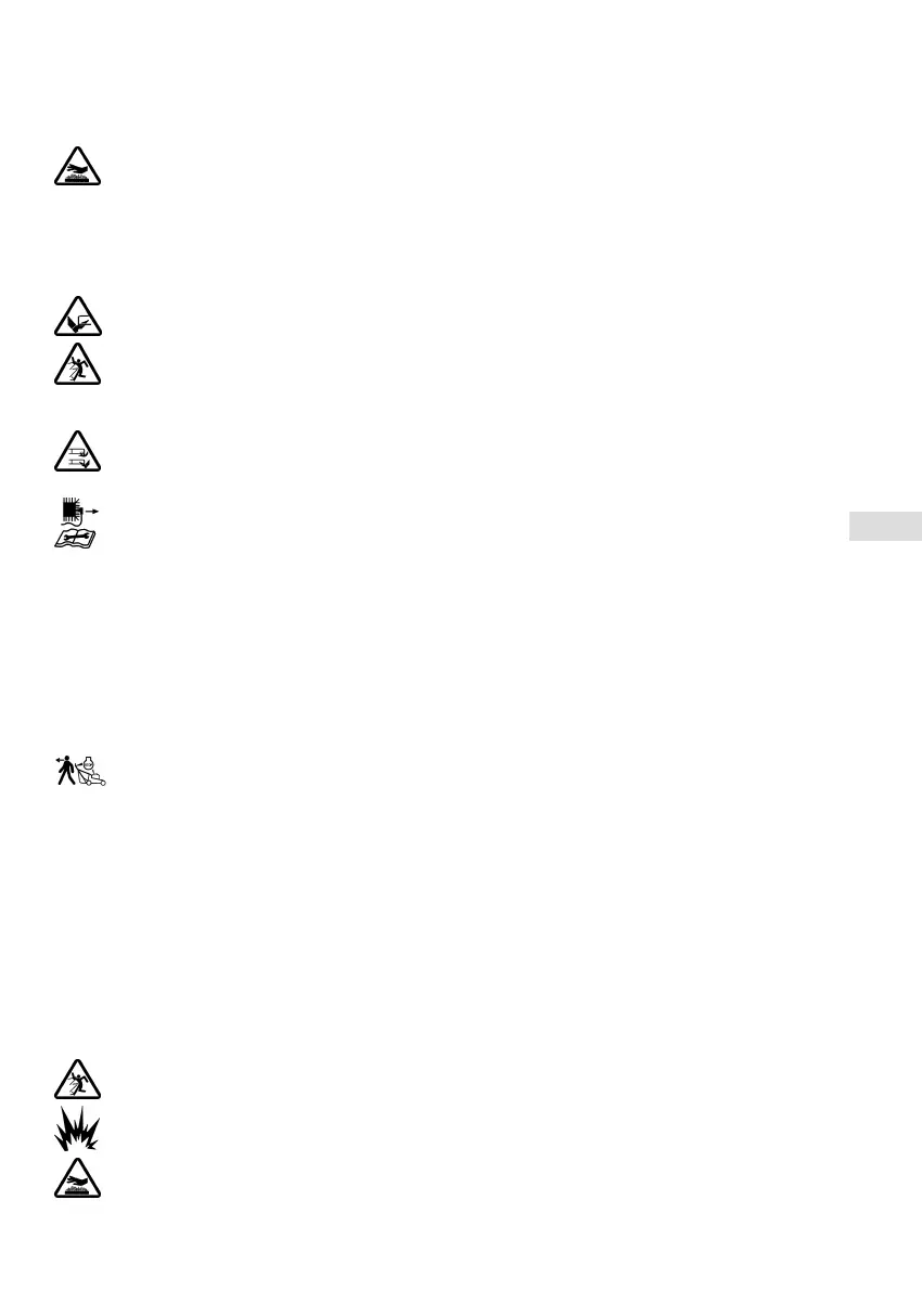 Hände und Füße nicht unter das Gehäuse kommen. Bei Geräten mit seitlichem Auswurf halten Sie sich immer