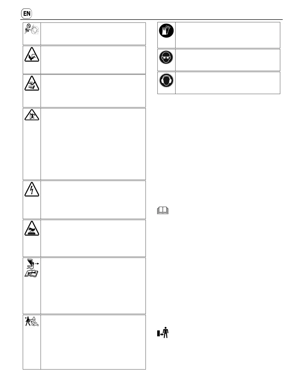 Only start the engine when standing behind the device.