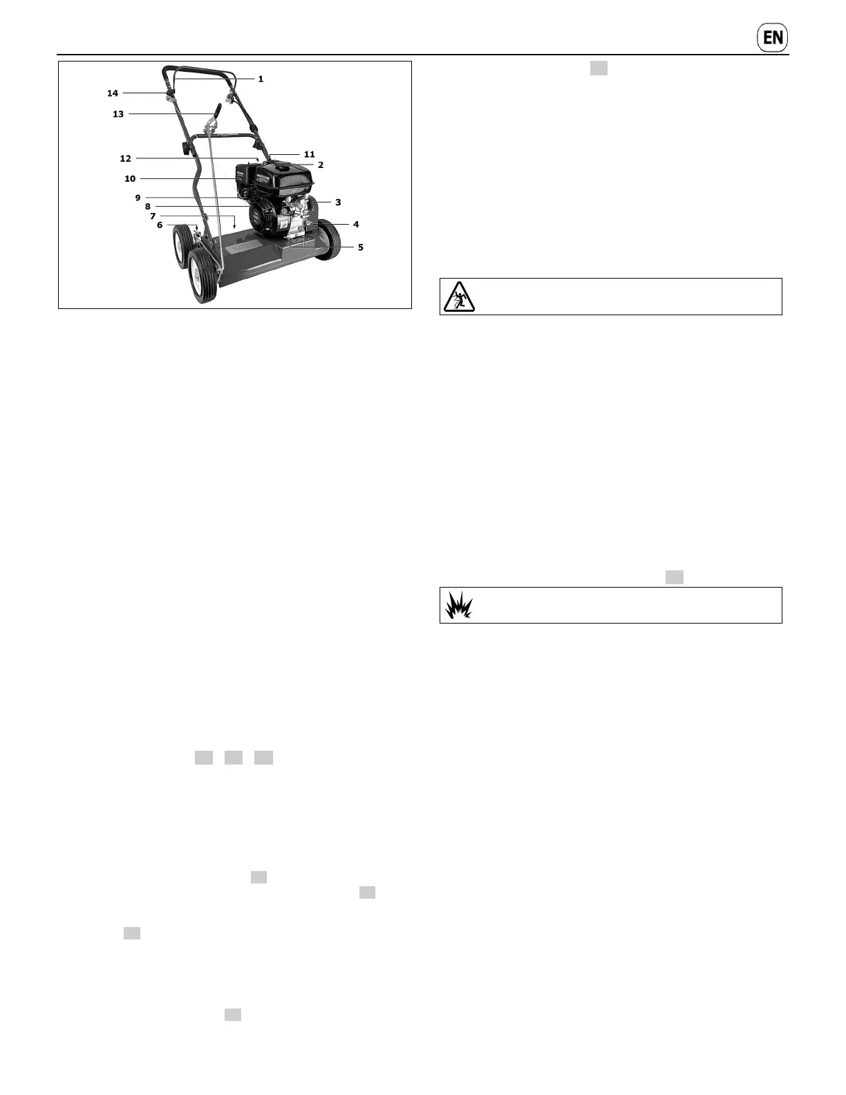 – The scarifier must stand horizontally on level ground.