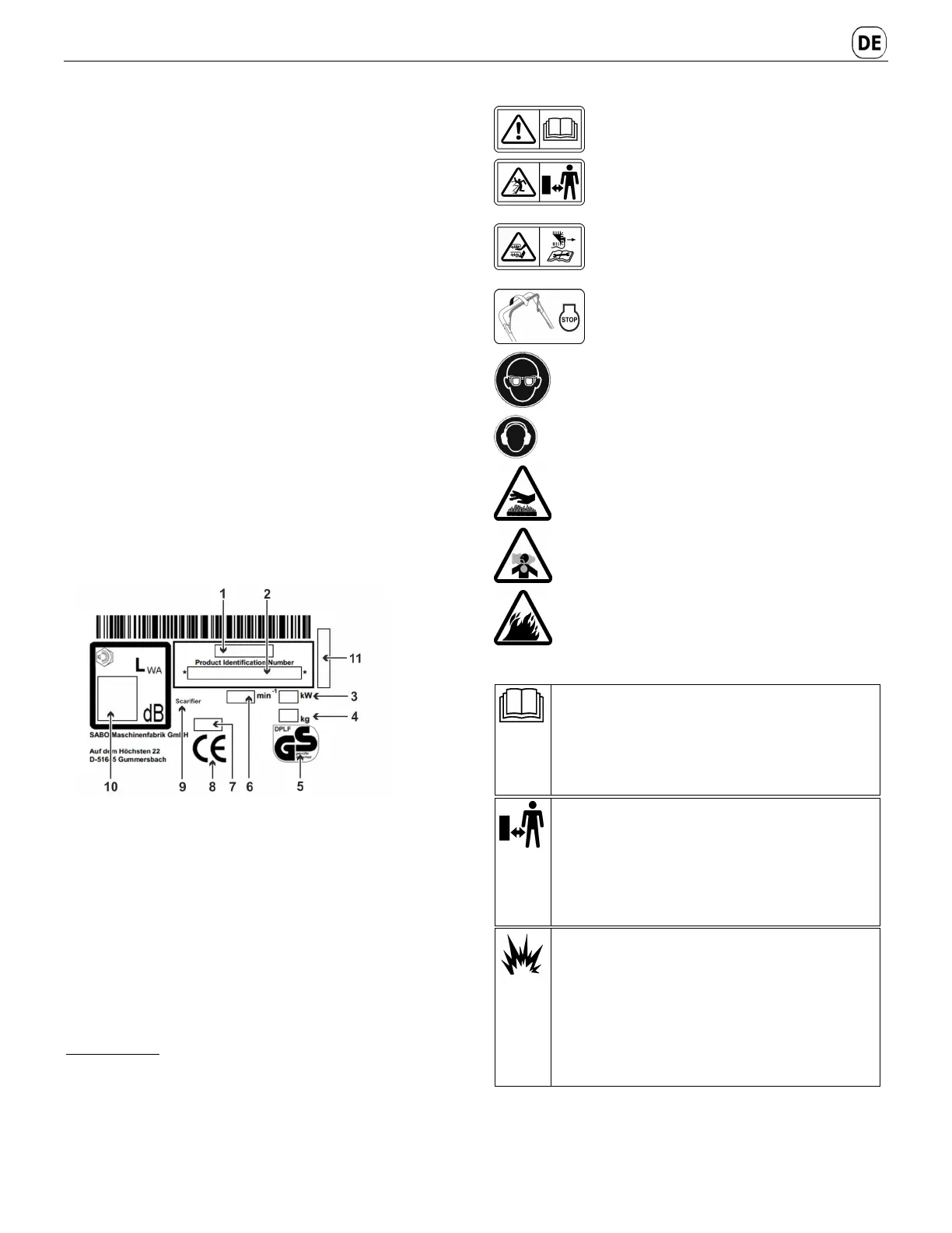 Benutzen Sie den Vertikutierer vorsichtig. Die auf dem Gerät angebrachten