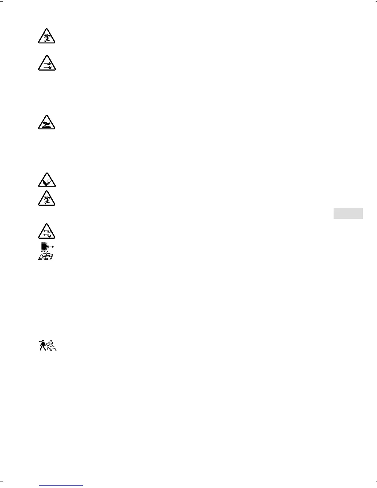 mettre les mains et les pieds sous le carter. Tenez vous toujours éloigné de l’ouverture d’éjection.