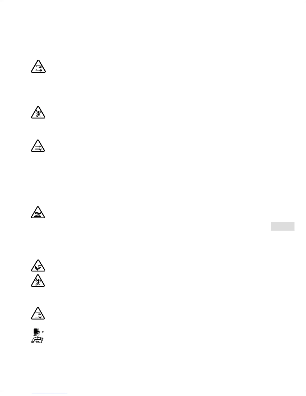 Не приближать руки и ноги к вращающимся частям конструкции. Следить за тем, чтобы руки и ноги не