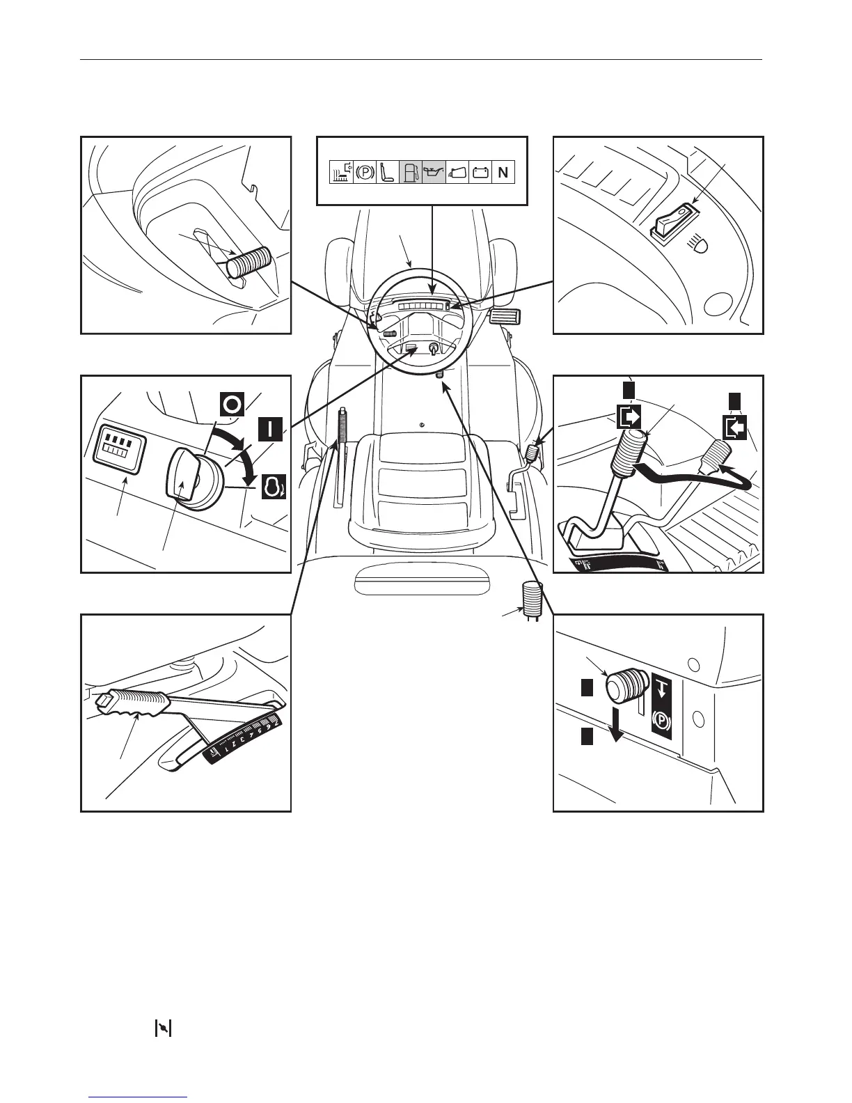 Regulates the engine's r.p.m. The positions are indicated on a plate showing the