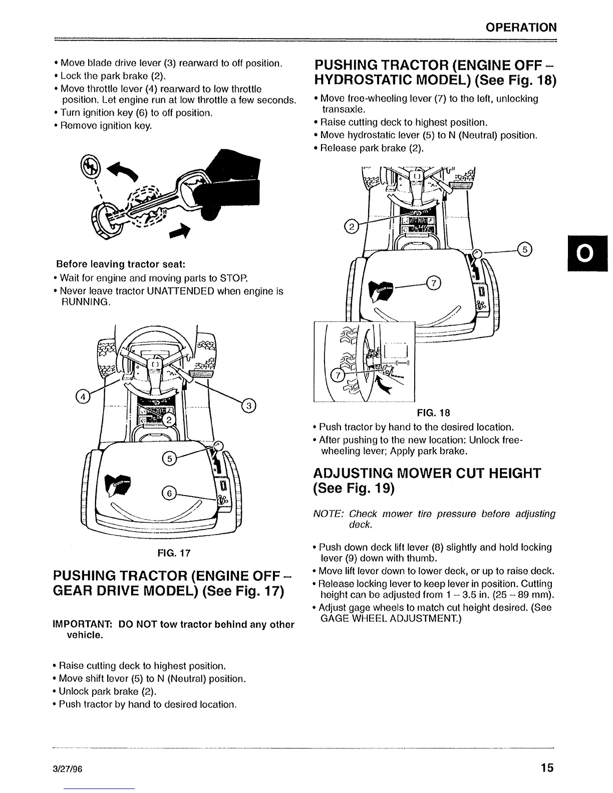 Sabre 1646 Hydro - Pushing Tractor; Adjusting Mower Cut Height