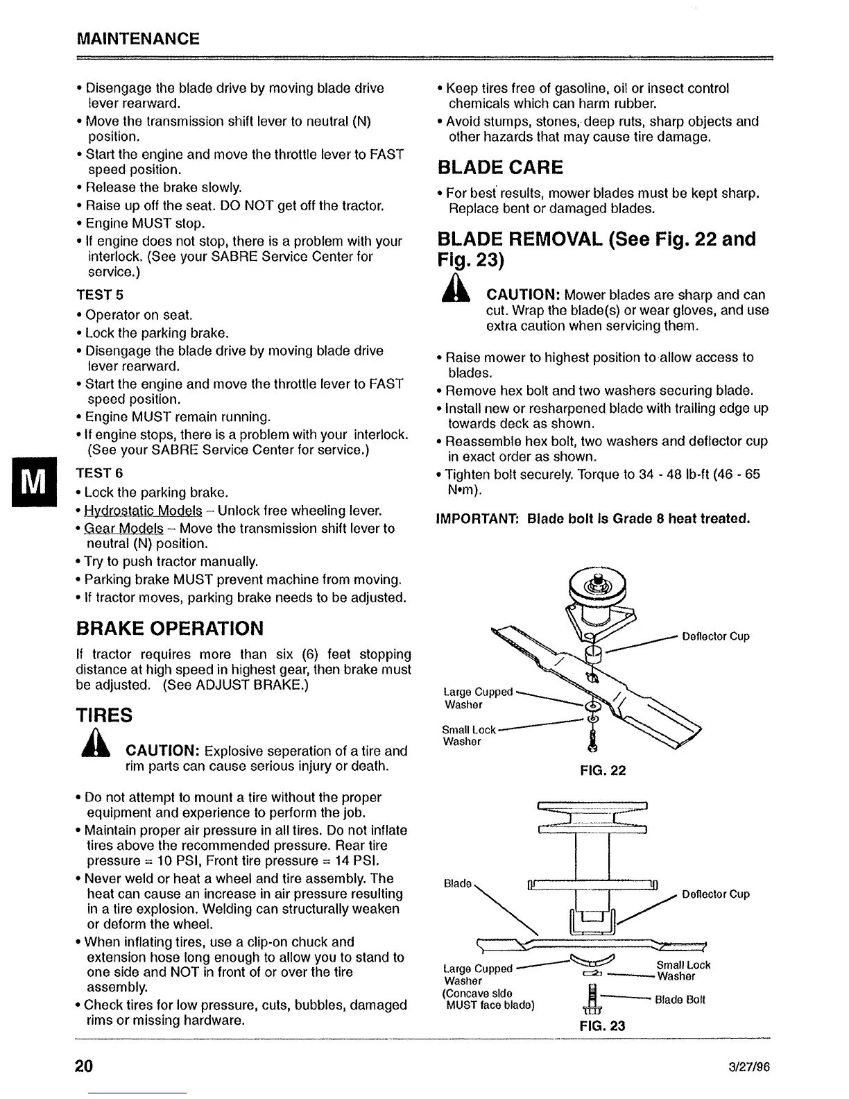 Sabre 1646 Hydro - Safety Systems, Brakes, Tires, and Blade Care