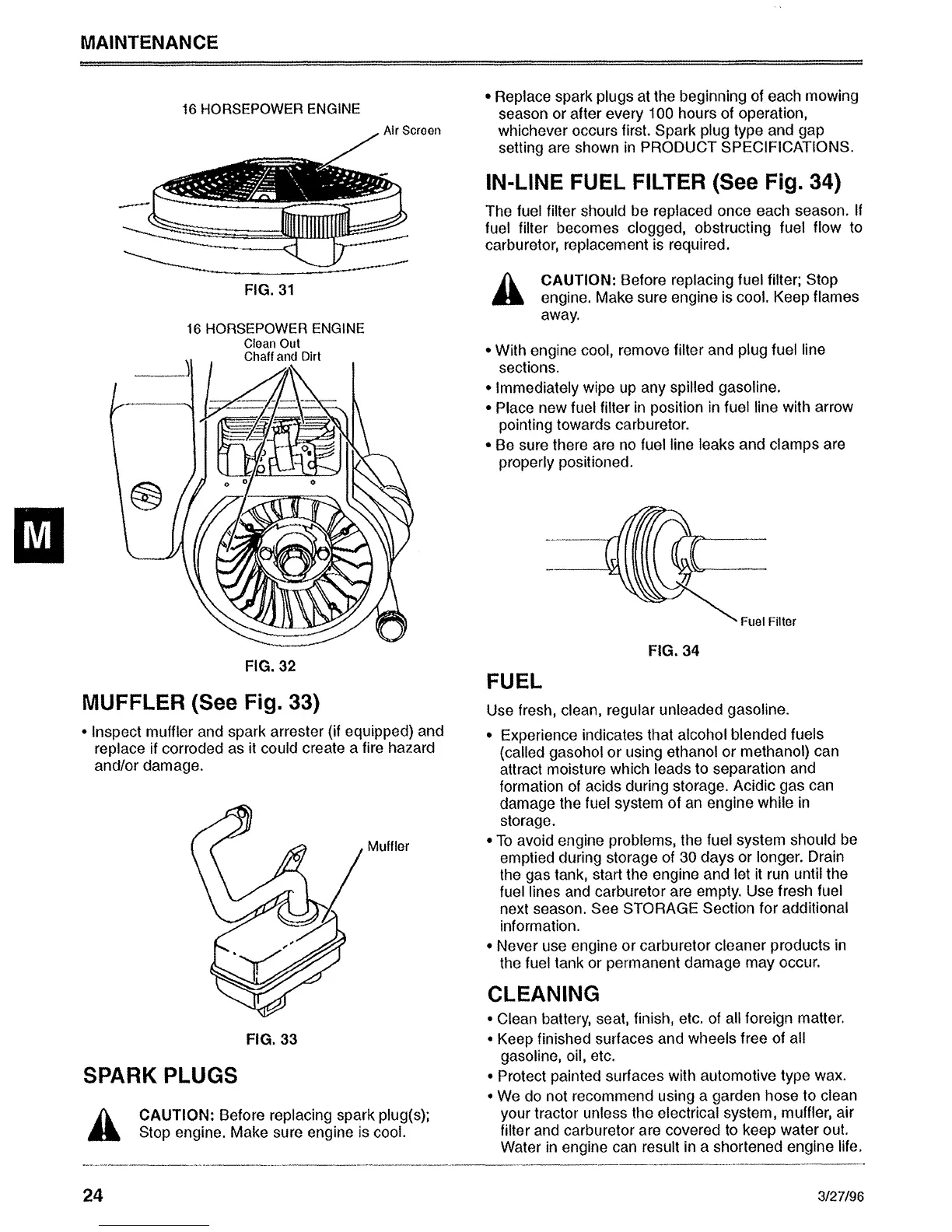 Sabre 1646 Hydro - Muffler, Spark Plugs, Fuel, and Cleaning; Muffler, Spark Plugs, and Fuel Filter Maintenance; Fuel Handling and General Cleaning