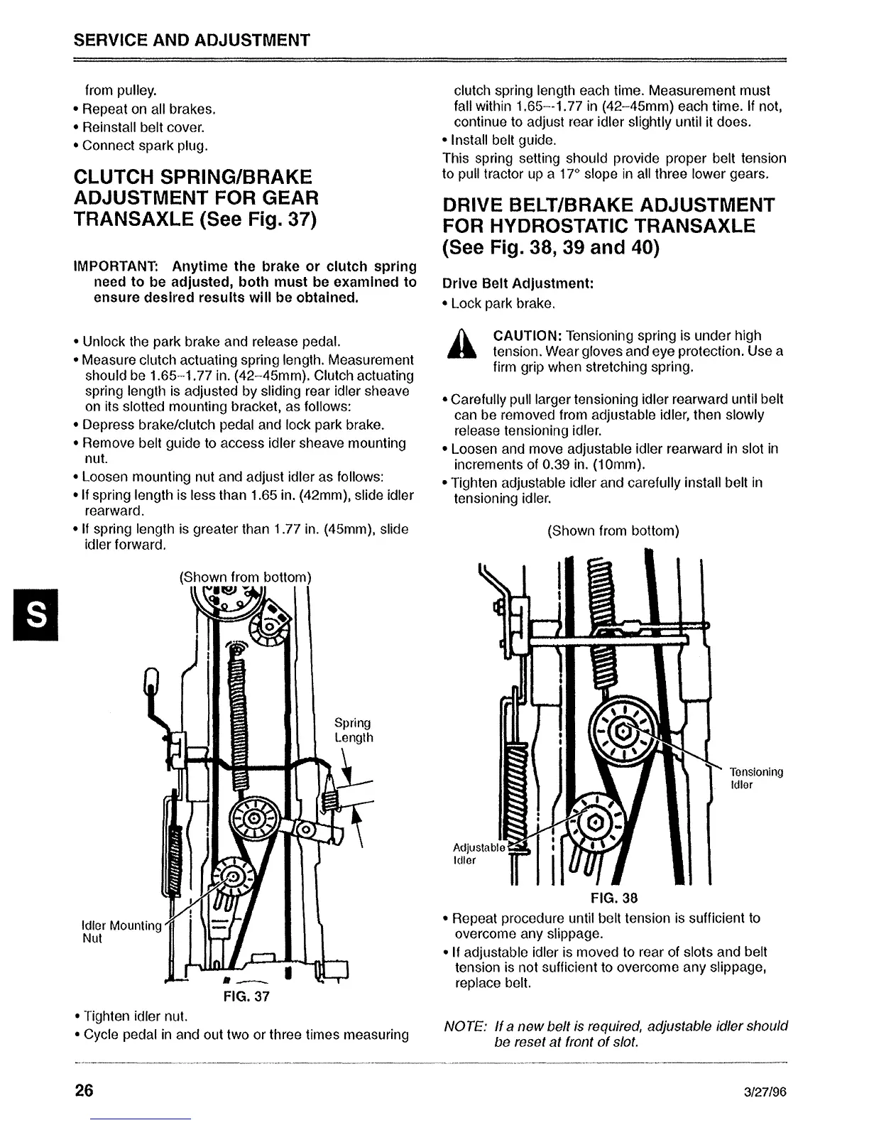 Sabre 1646 Hydro - Transaxle Clutch and Brake Adjustments
