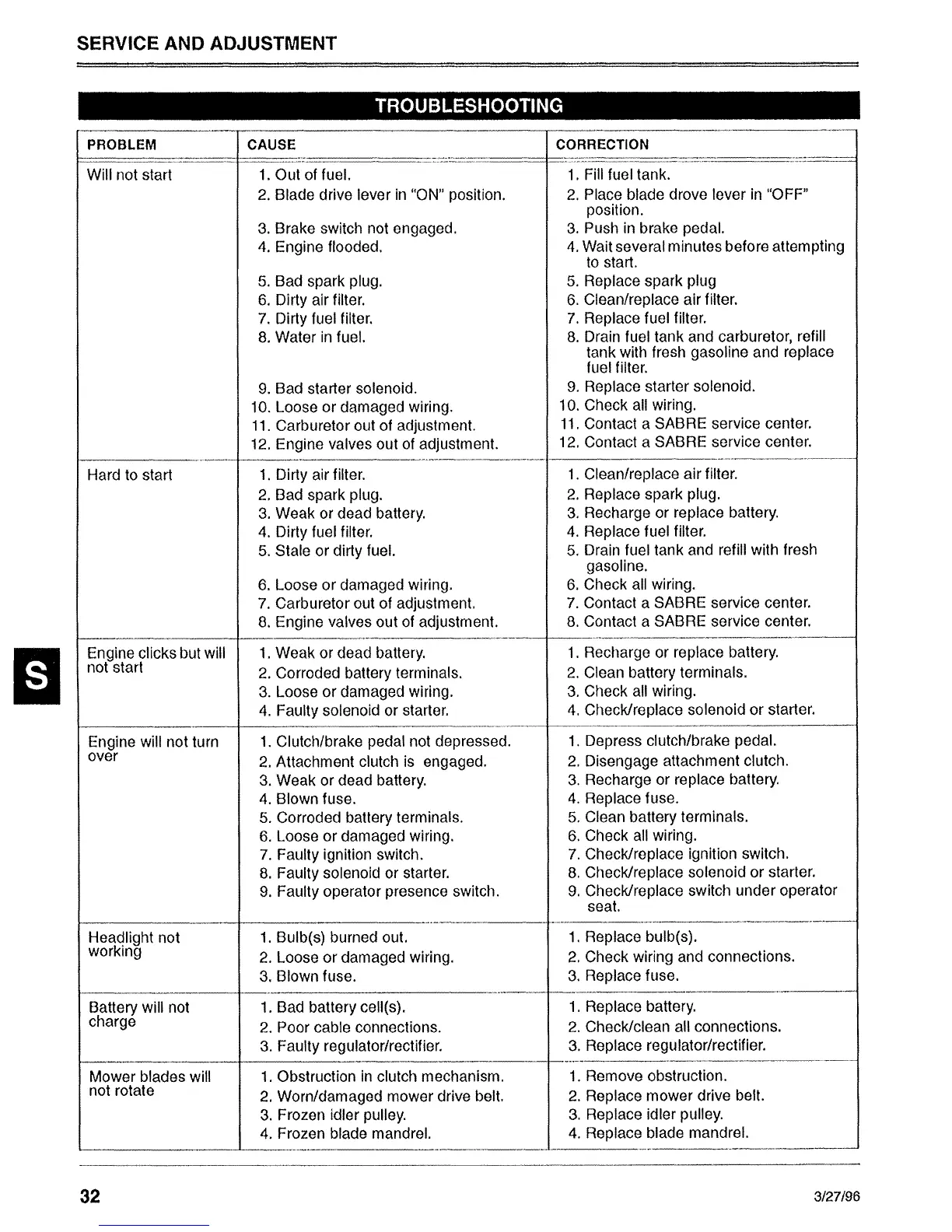 Sabre 1646 Hydro - Troubleshooting and Electrical Systems; Troubleshooting Common Tractor Problems