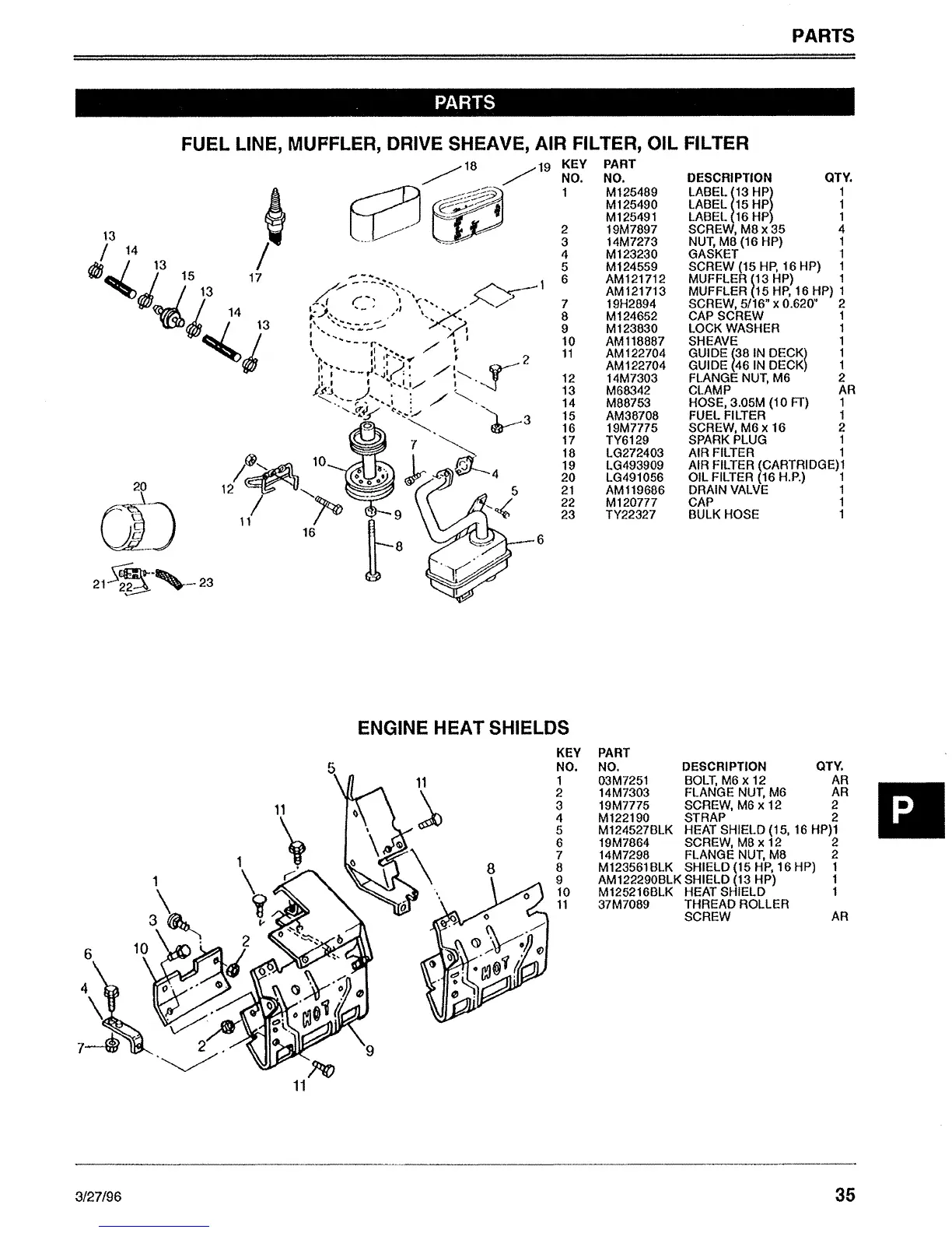 Sabre 1646 Hydro - Tractor Parts Identification; Fuel, Muffler, and Air Filter Component Parts