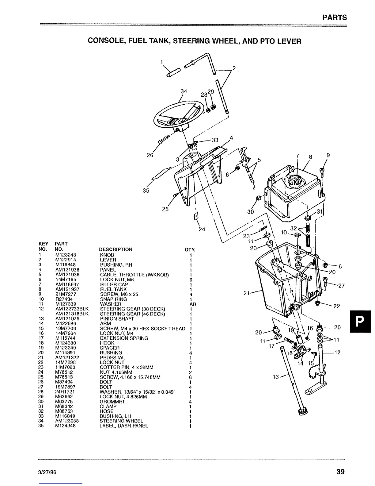 Sabre 1646 Hydro - Tractor Component Parts; Console, Fuel Tank, and Steering Assembly Component Parts