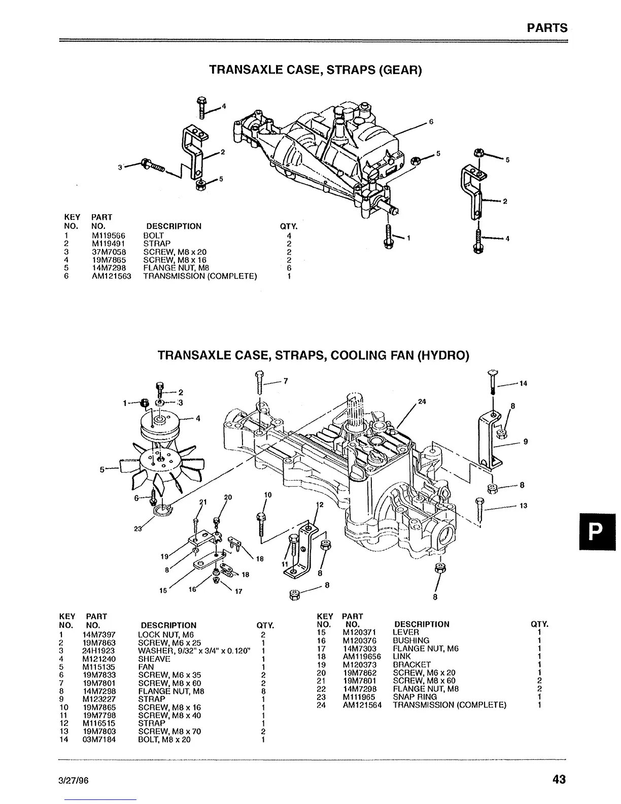Sabre 1646 Hydro - Mower Deck Parts; Transaxle Assembly Component Parts (Gear and Hydro)