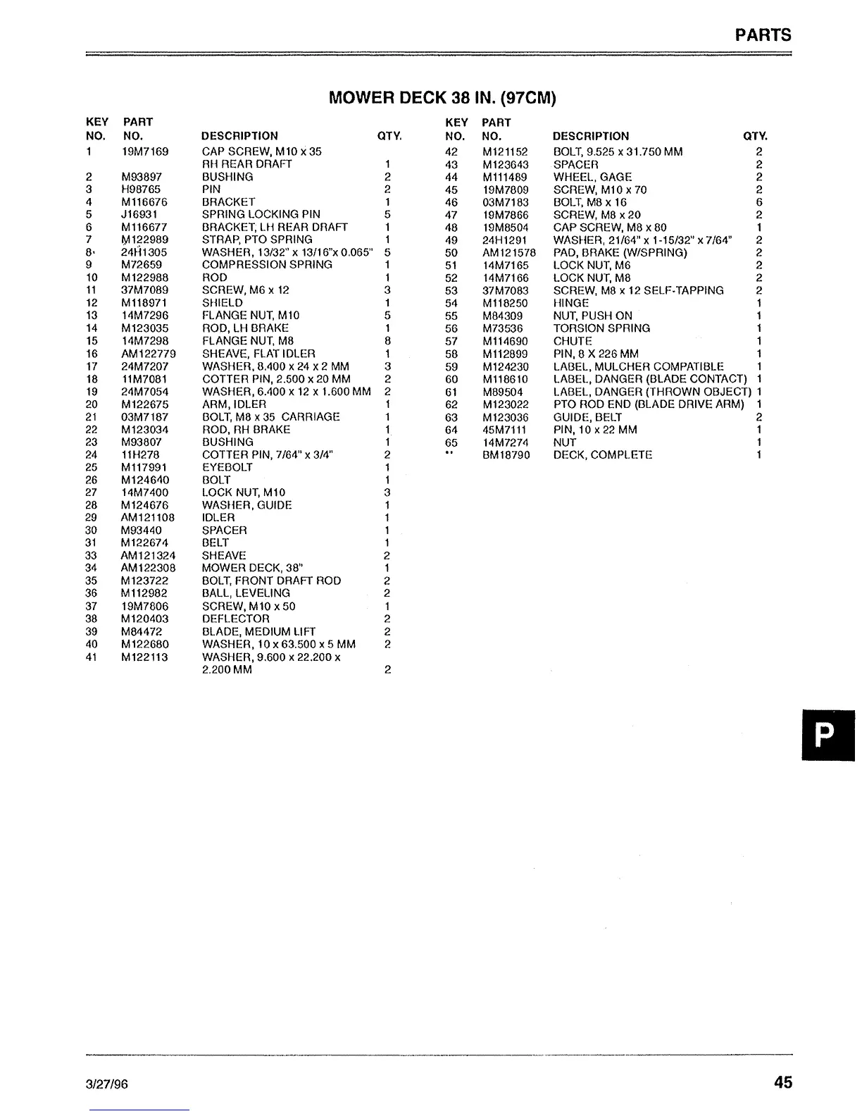 Sabre 1646 Hydro - 38-INCH MOWER DECK Parts List