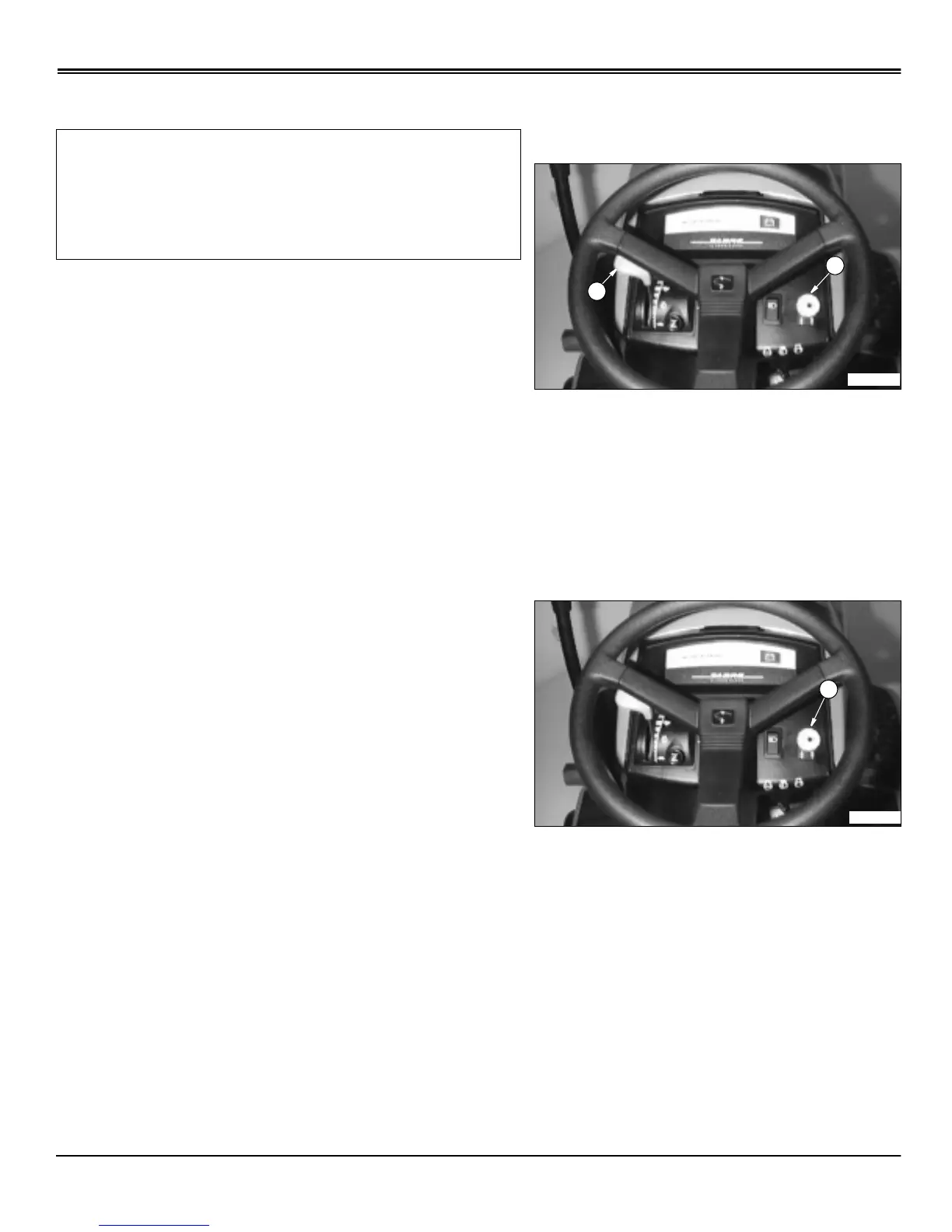 4. Pull PTO switch (B) up to ENGAGE mower.