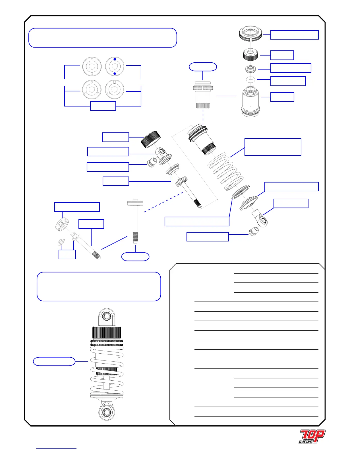 注意: さまざまなショックピストンから必要に応じて選ぶ