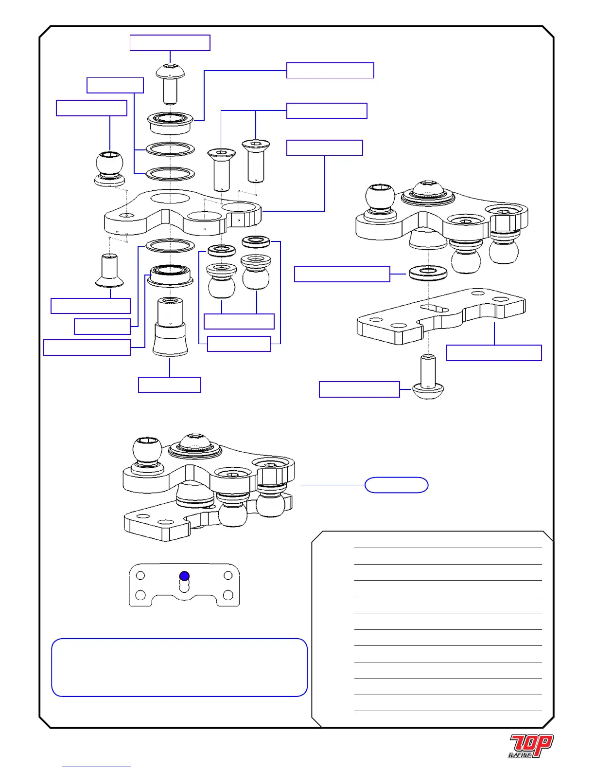 Note: Shaded screw hole is occupied for the standard Ackermann