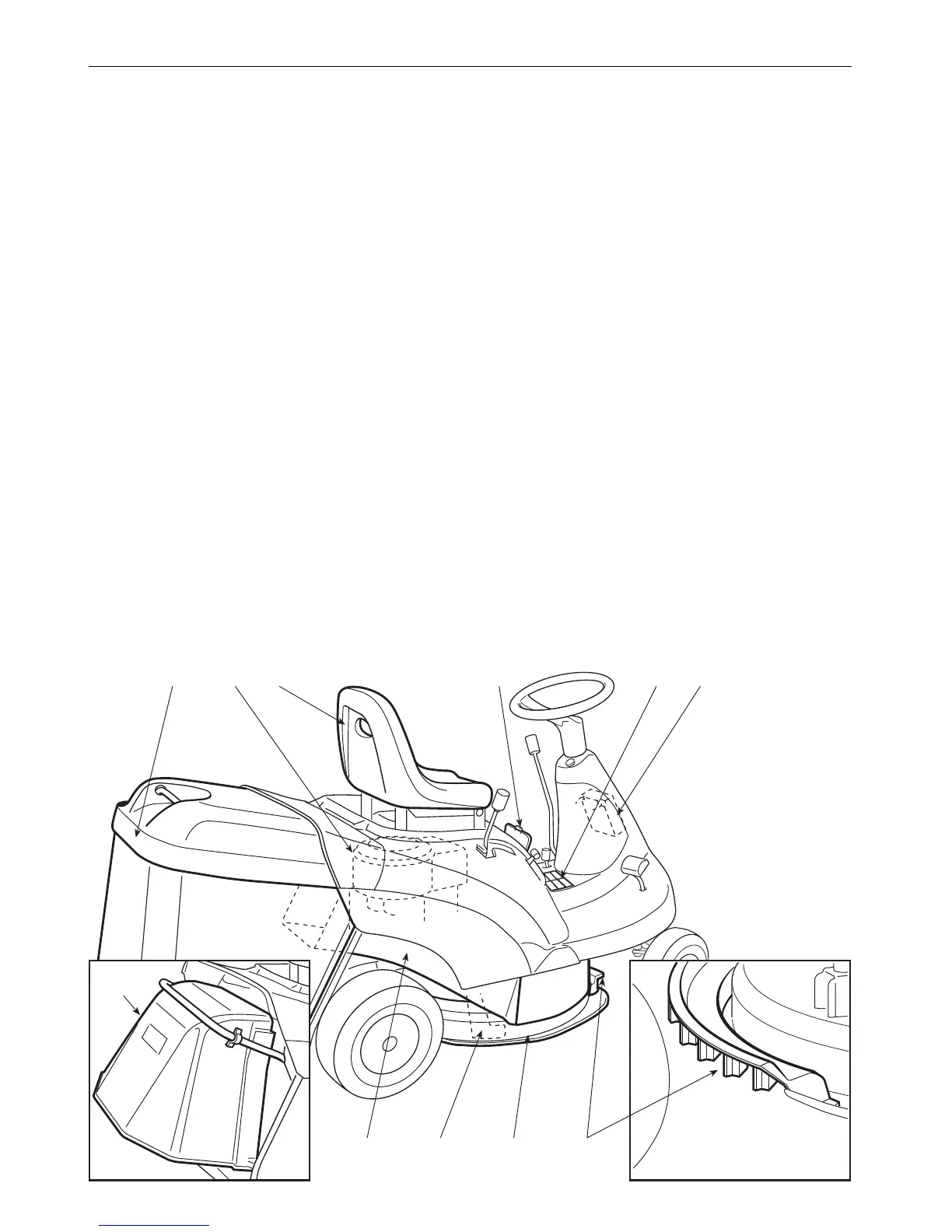 14. Grass-catcher: as well as collecting the grass cuttings, this is also a safety