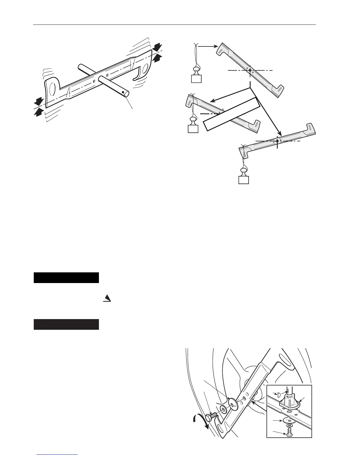 und darauf zu achten, dass die Flügel des Messers zur Innenseite des Mähwerks