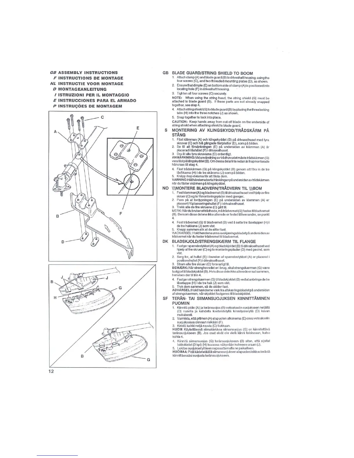 Sabre S3045 - Assembly Instructions; Blade Guard;String Shield to Boom