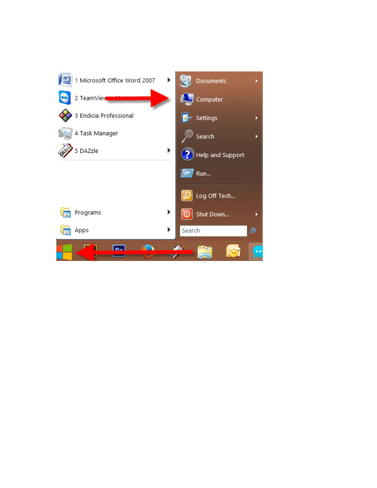 1. Click on the Start Icon located on the bottom left of the screen and then click on Computer.