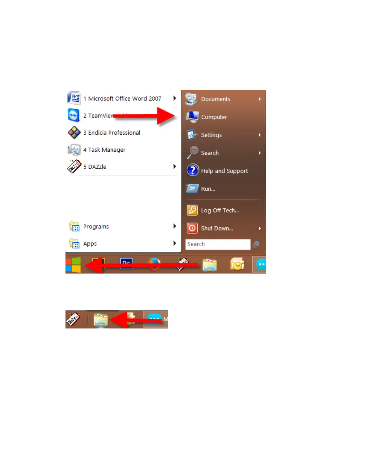 1. Click on the Start Icon located on the bottom left of the screen and then RIGHT click on