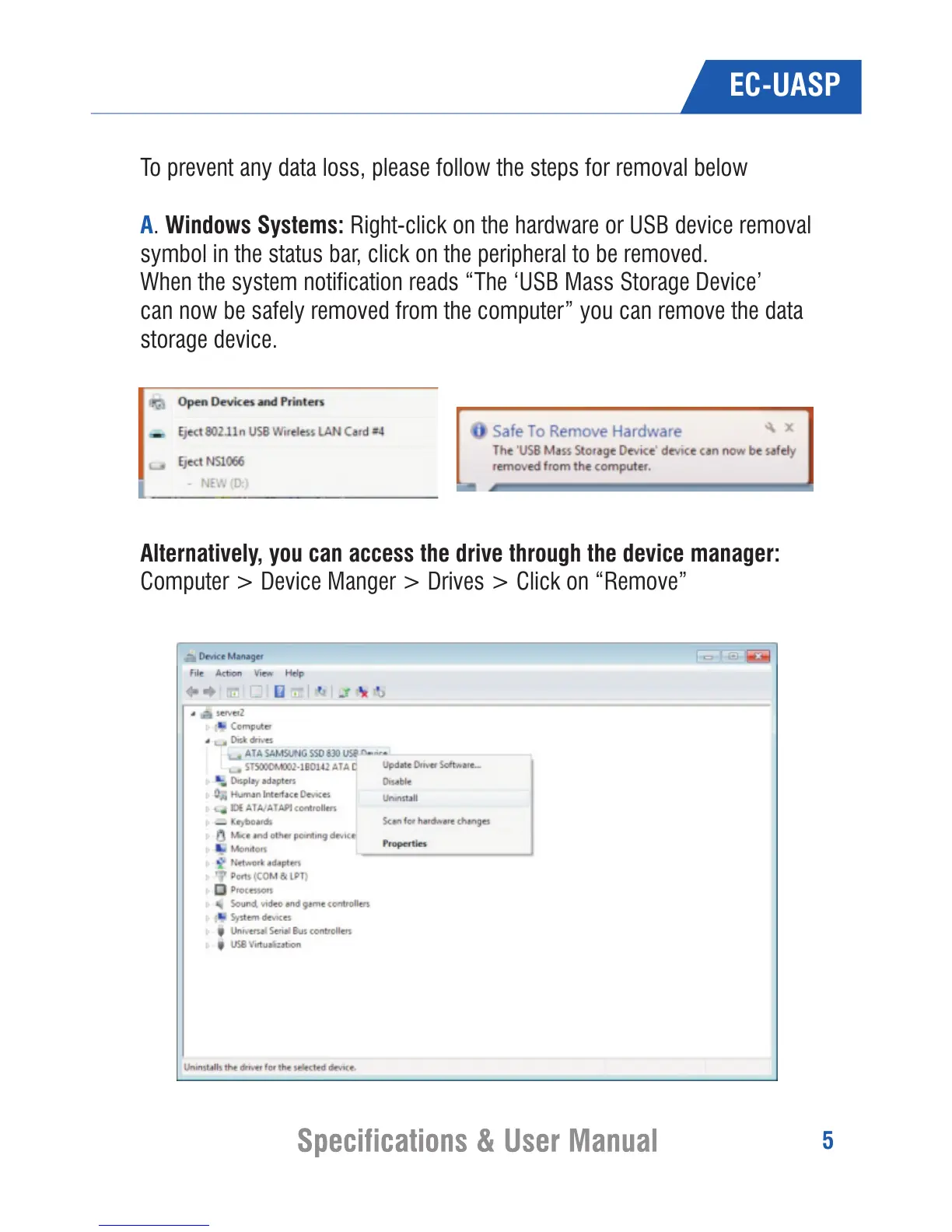 AWindows Systems: 5LJKWFOLFNRQWKHKDUGZDUHRU86%GHYLFHUHPRYDO