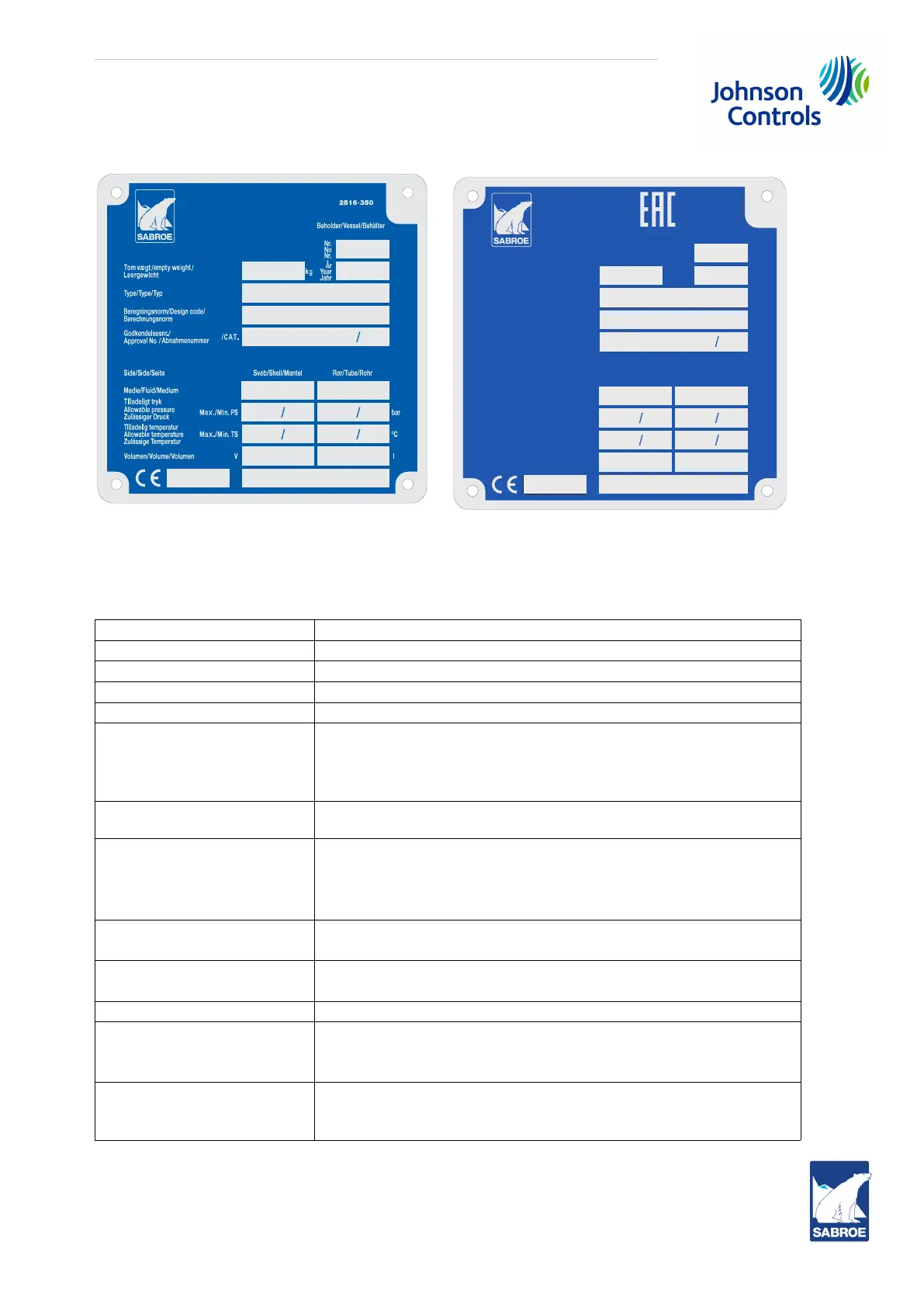 vessel name plate may differ from the Sabroe name plate above.