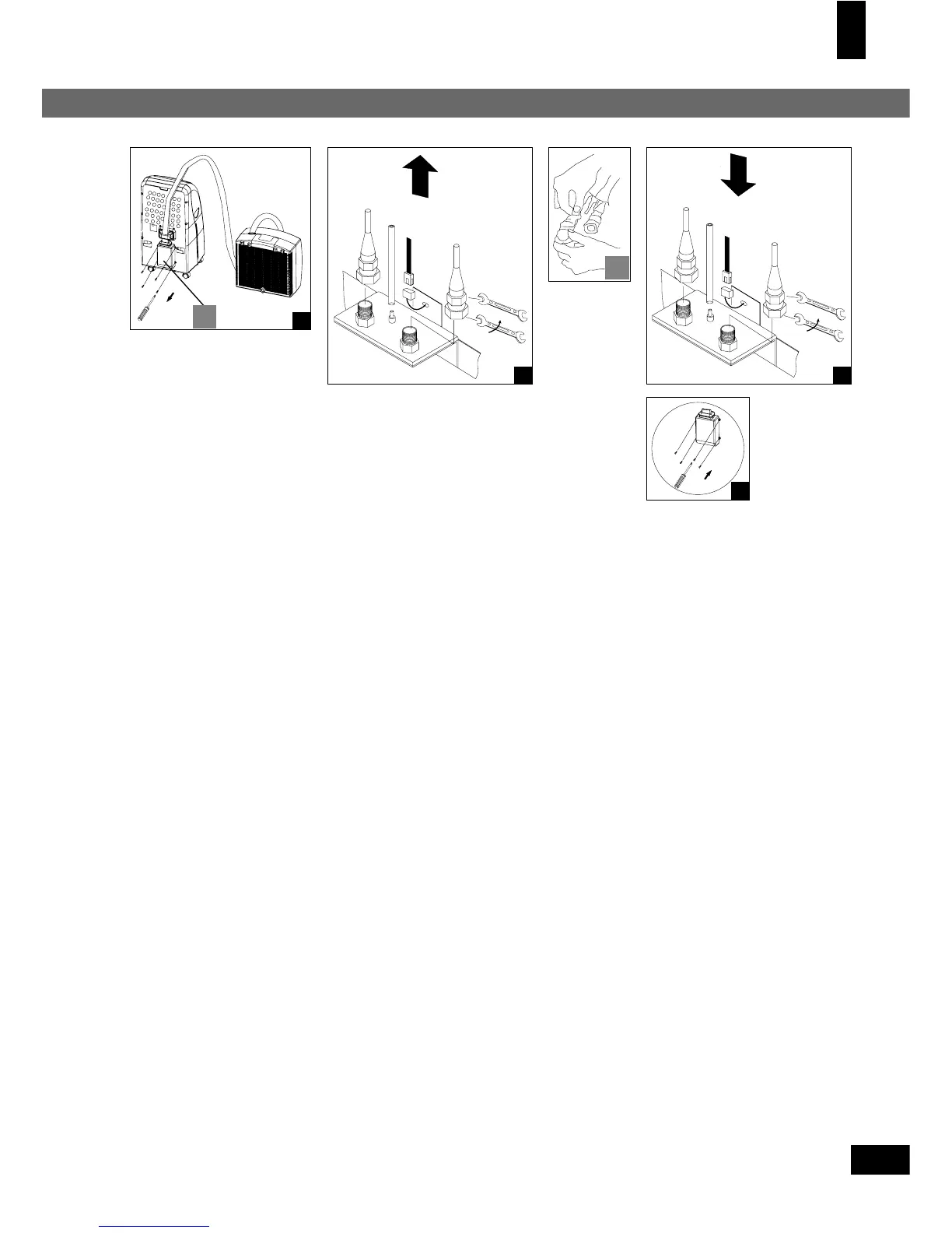 • met de steeksleutels (15) de koelleidingen (III) losmaken.