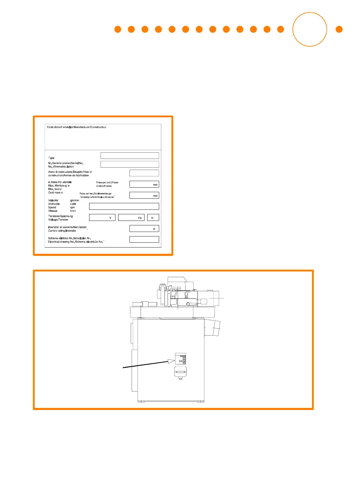 The machine is identified by the writings shown on the plate (Fig. 1) placed on the base -