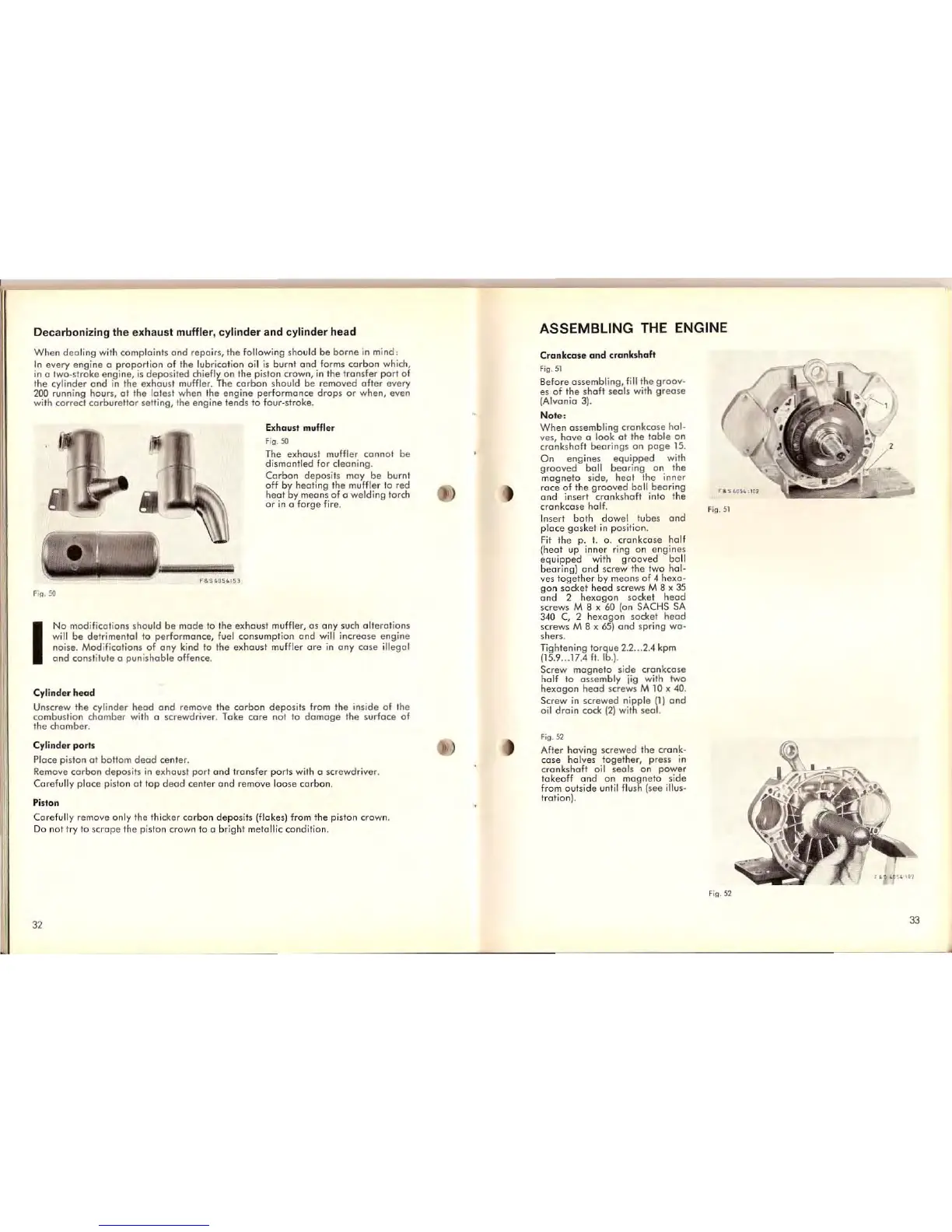 Sachs SA 290 - Assembling the Engine; Decarbonizing the Exhaust Muffler, Cylinder and Cylinder Head; Crankshaft and Crankshaft
