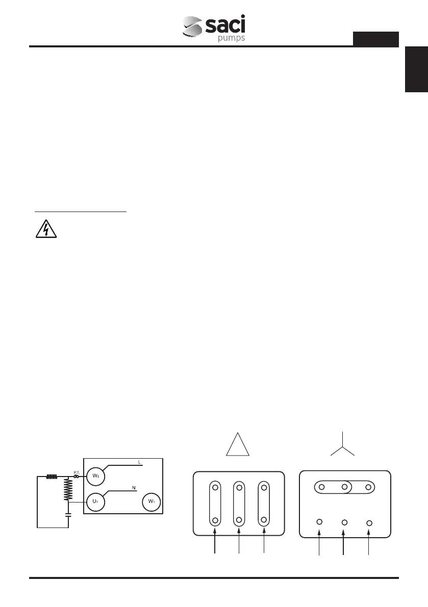 Para efectuar la conexión electrica en los bornes de la bomba deben seguir los esquemas siguientes.