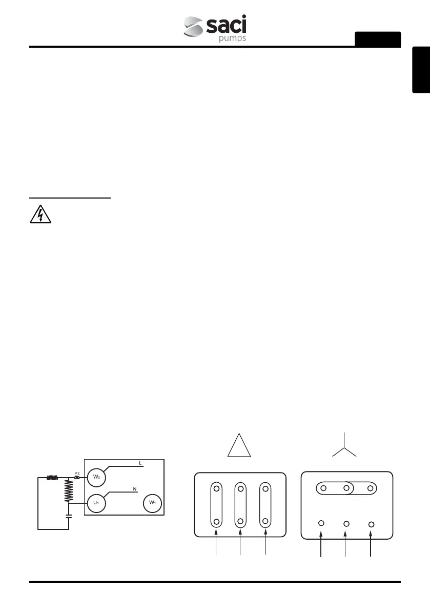Para efectuar a ligação eléctrica nos bornes da bomba deve-se respeitar o seguinte esquema.