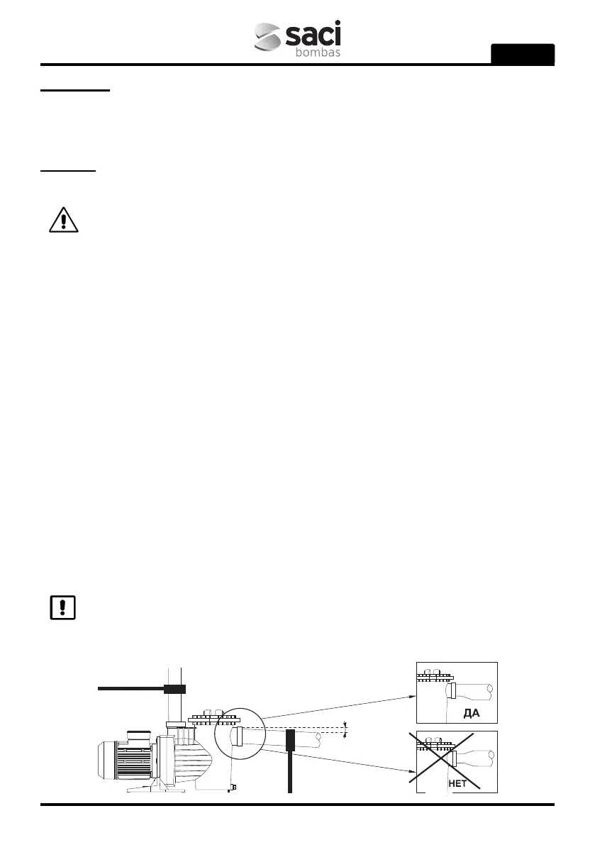 Pompa, uygun kendinden emiş için su seviyesinden en fazla 2,5 metre uzerinde bağlanabilir.
