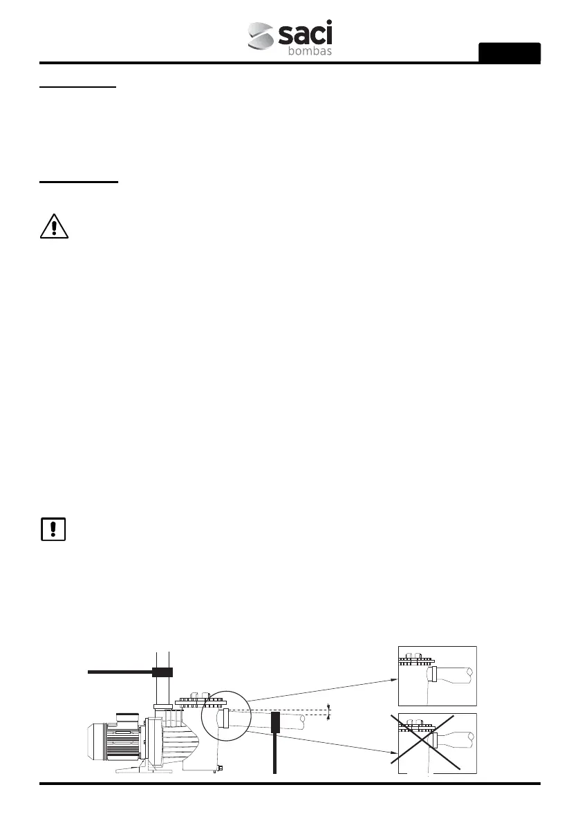 La tubería de aspiración debe estructurarse con una ligera inclinación hacia la bomba evitando de esta manera la