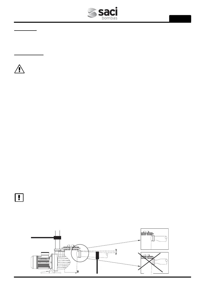 Um eine optimale Selbstansaugung zu erreichen, sollte die Pumpe nicht höher als 2,5 m über dem Wasserspiegel