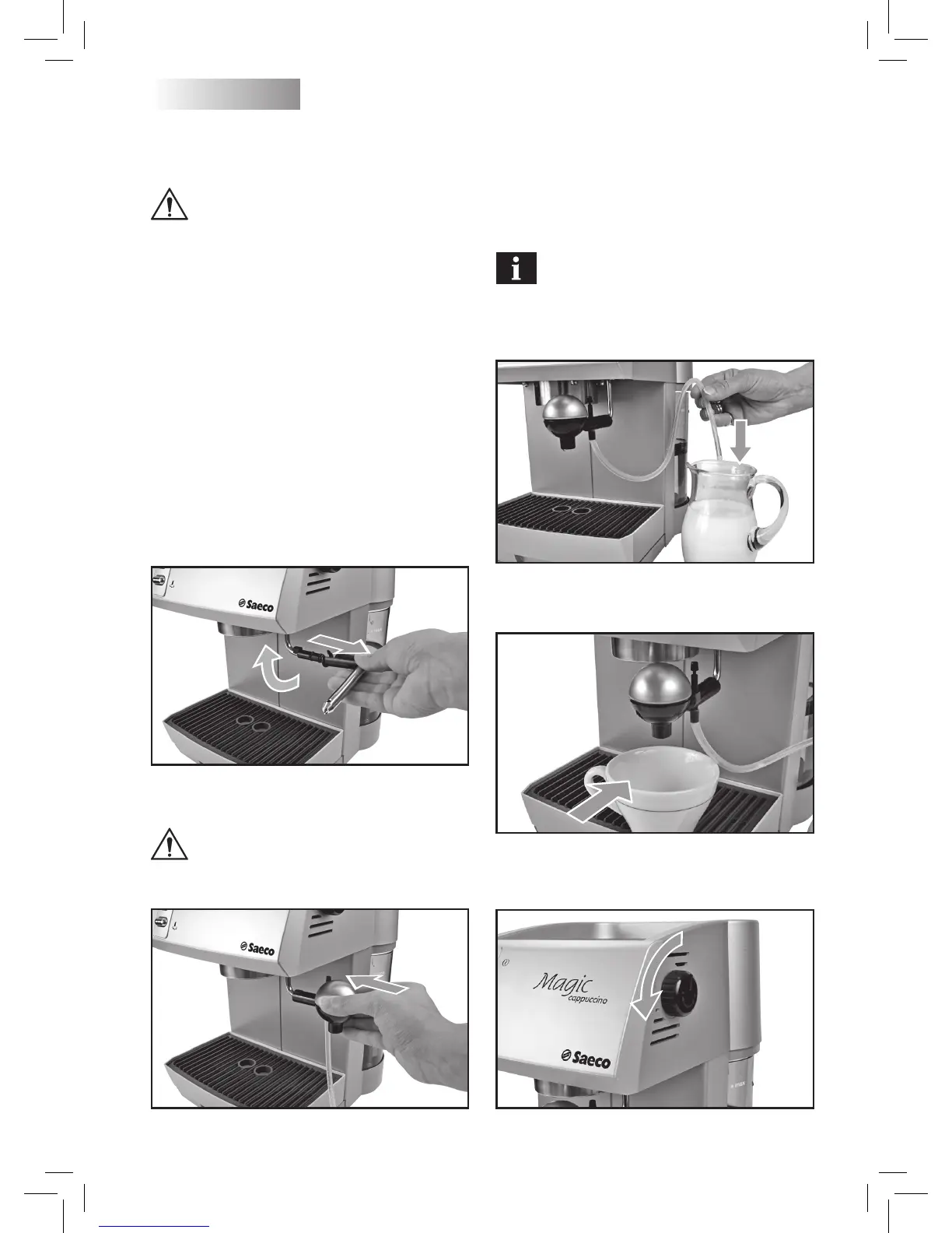 • Zet een kopje onder de cappuccino-bereider en