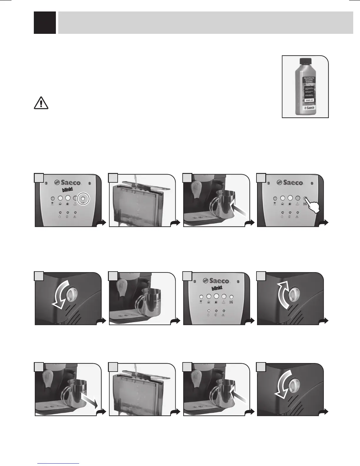 Hinweis: bevor der Entkalkungszyklus gestartet wird, ist folgendes sicherzustellen: