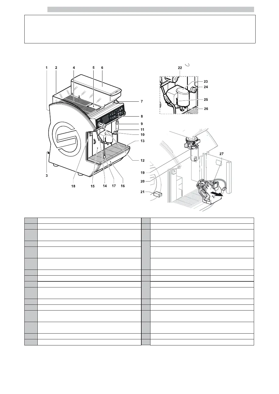 10 Hose clamp (CAPPUCCINO set-up) It displays the number of beverages brewed by the machine.