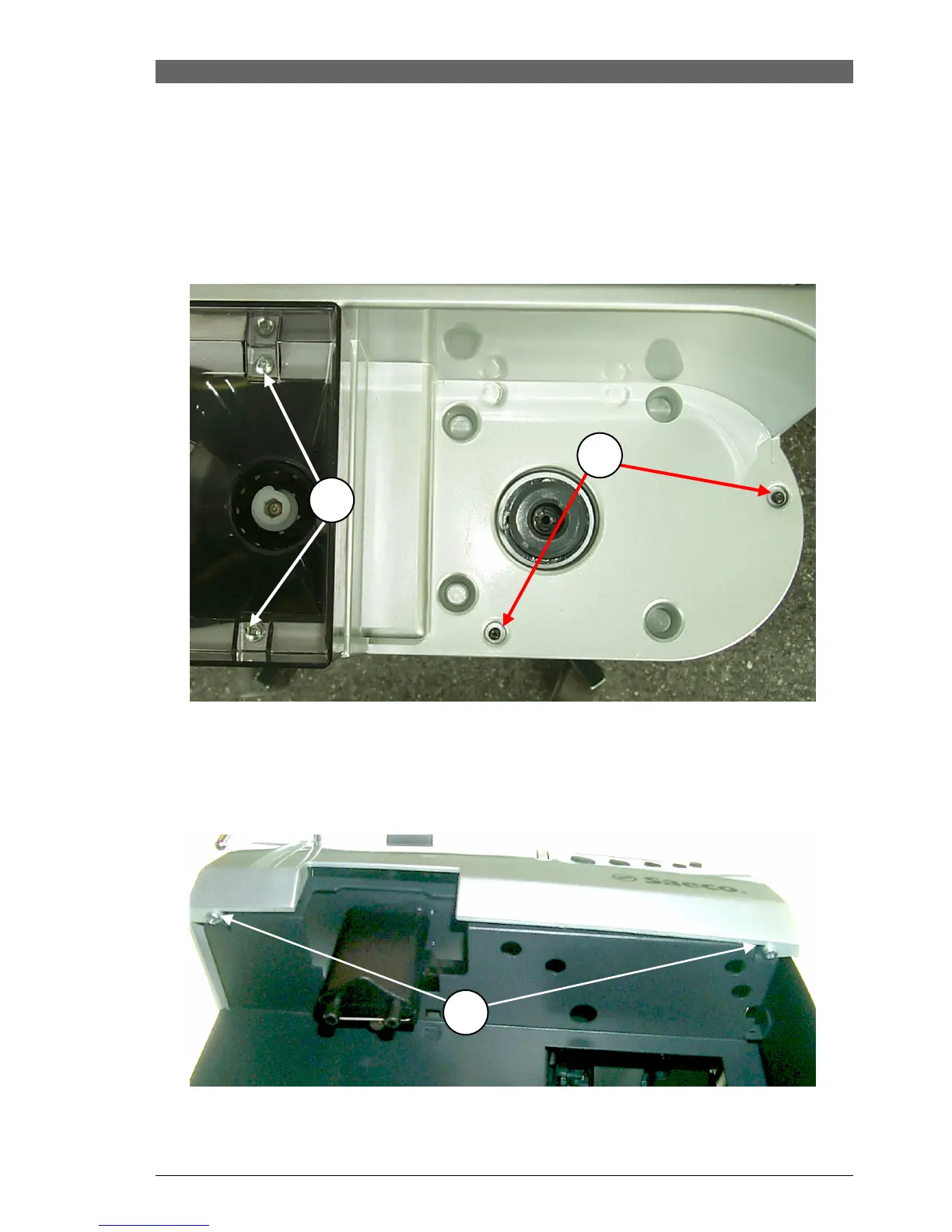 b) Unscrew the bean container by removing the two screws (1). New models may